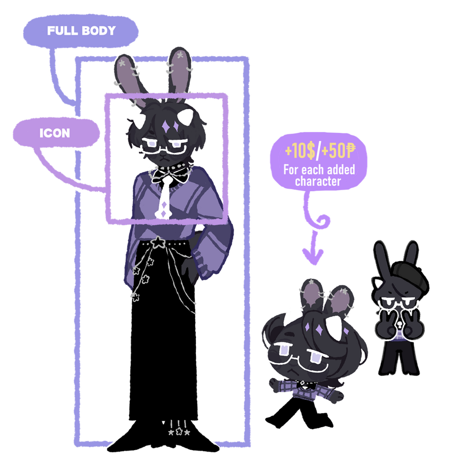 When you're comissioning me for stickers, you may list it down like this: (see pics above for example)